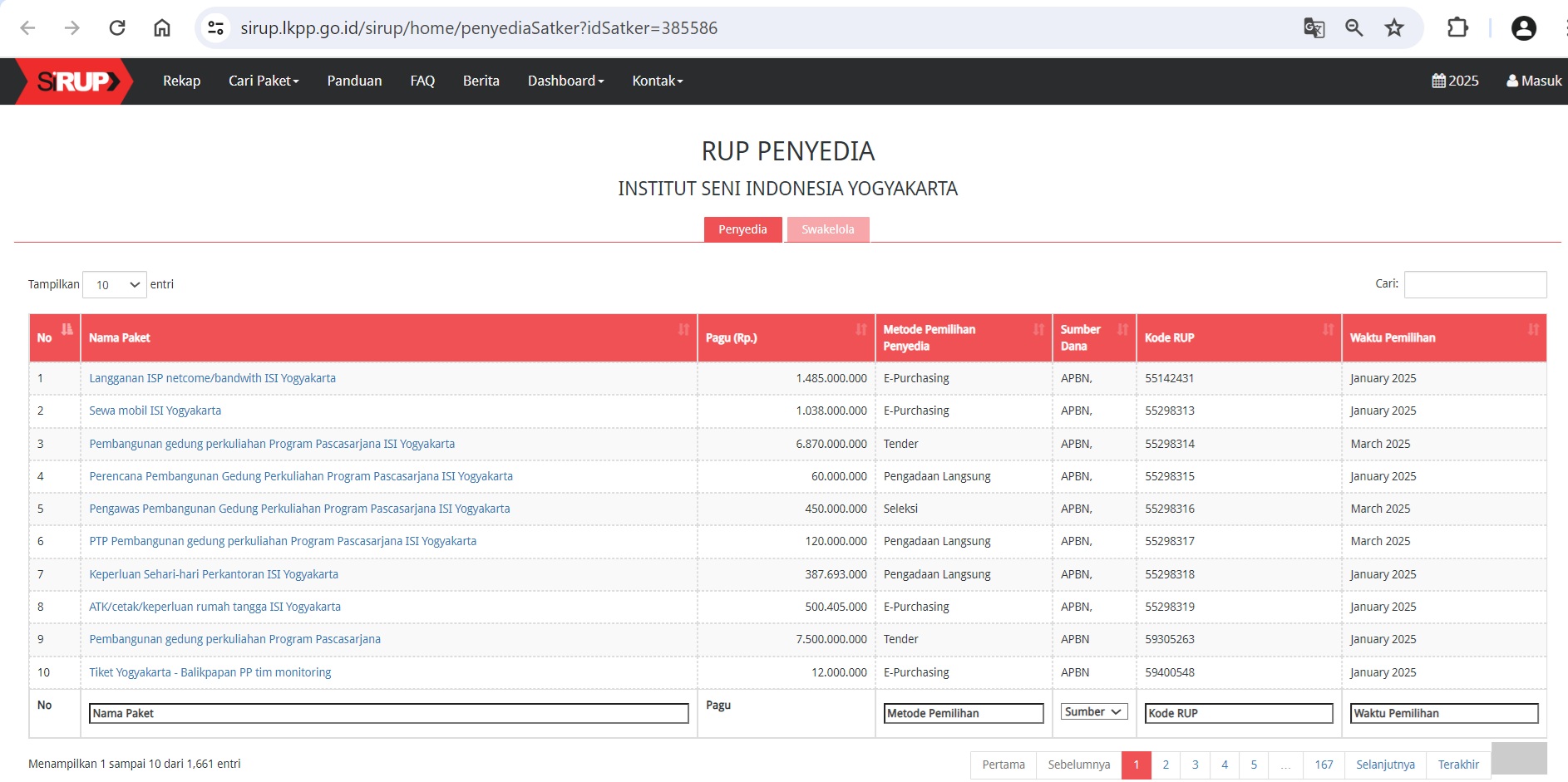 | 1 | PTN mengumumkan rencana umum pengadaan Tahun 2025 | Lihat | Link |