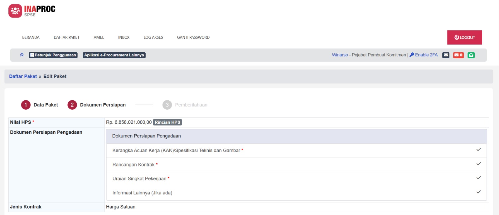 | b. Harga Perkiraan Sendiri (HPS) serta Riwayat HPS | Lihat | – | |
